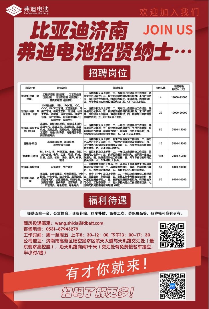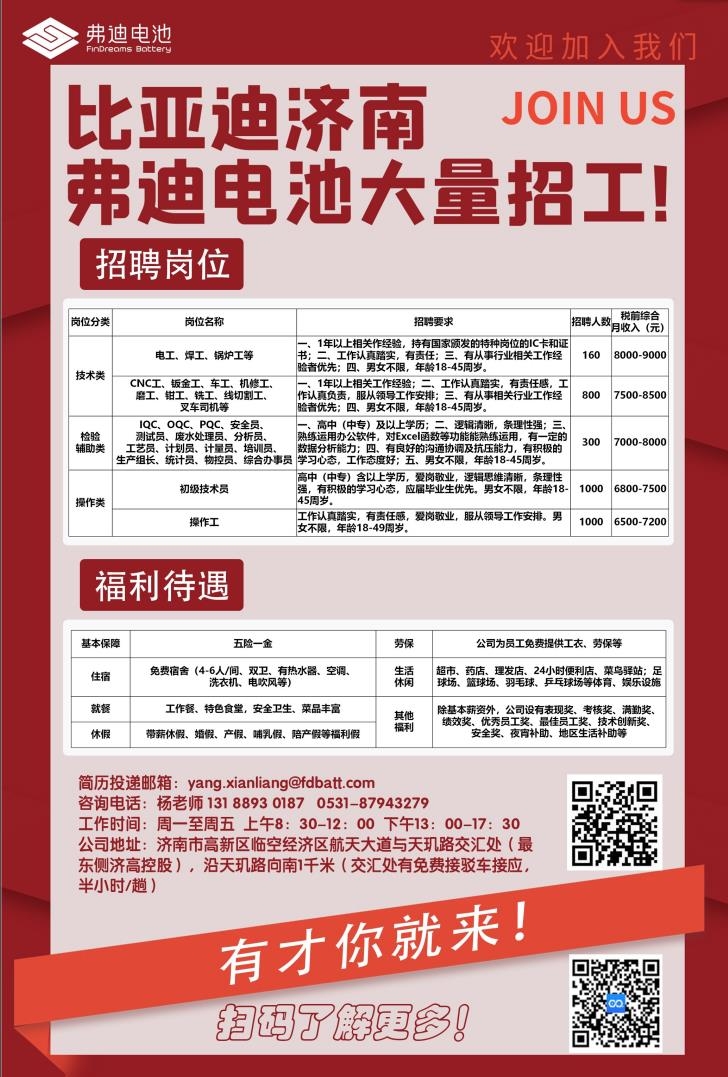 濟(jì)南弗迪電池有限公司,位于濟(jì)南市臨空經(jīng)濟(jì)區(qū),總投資100億人民幣,占地1150畝,規(guī)劃建設(shè)16條動力電池生產(chǎn)線,滿產(chǎn)產(chǎn)能30GWh/年。濟(jì)南公司專注于動力電池的生產(chǎn)制造,是刀片電池的主要生產(chǎn)基地。